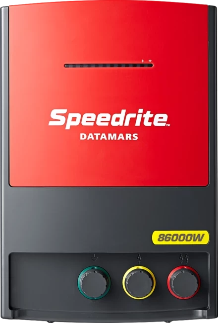 The Speedrite 86000W Mains Energizer is perfect for farmers that want a great performing energizer with an intuitive interface. It features Bluetooth and Wi-Fi compatibility allowing farmers to monitor and control their energizer using the Datamars Livestock Farm App from a phone.
